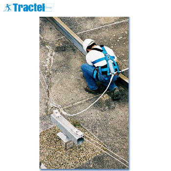 安裝在地面或支撐座上的TRAVSAFE™ 安全線能夠使作業人員在無需變換滑塊位置的情形下將滑塊從一端移動到另一端。