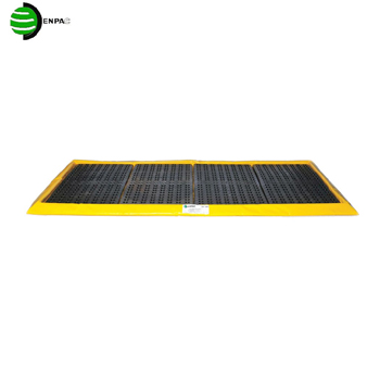 機車上下,開進開出 不需要斜坡,柔性邊墻可以彈回,允許叉車和機車開進開出 8桶單元可以儲放2個IBC 4桶襯墊可以儲放1個IBC