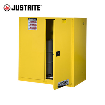 > 化學(xué)品防泄漏、存儲(chǔ)分裝 > 化學(xué)品存儲(chǔ) > 易燃液體防火安全柜(黃色) > 安全柜|Justrite立式圓桶安全柜_30加侖易燃液體安全柜8990601/8990701