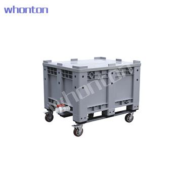 5、箱體采用一次注塑成型技術, 產(chǎn)品設計以托盤和箱體為一體式,特別適合配套叉車及手動搬運車使用,卡板更為靈活方便;