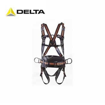 商品名稱:DELTA安全帶|代爾塔防墜落安全帶_雙調兩掛點含定位腰帶安全帶 501024 商品編號:04801105 品牌:DELTA HAR24H (501024)雙調兩掛點含定位腰帶安全帶,配有胸前、背部雙掛點和腰部定位點,腰帶能180o旋轉,便于調用4個工具環上的物件。黑橙色橫條高強度織帶,左肩胛部配有下墜指示器,背部超大型連接環。