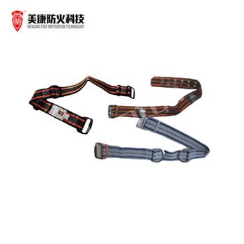 用于消防員登高作業和逃生自救用防護裝置,采用聚酰胺纖維或聚酯纖維和高強度金屬件制成。安全腰帶的織帶為一整根結構:由織帶、針扣、環扣和兩個拉環等零件構成。