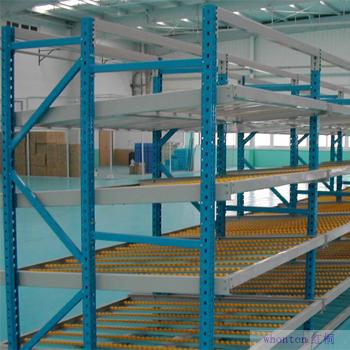 貨物從有坡度的滑道上端存入,當在低端取貨時,貨物借助重力自動下滑,可實現“先進先出”作業,使用成本低,存儲密度大。廣泛用于超市、醫藥、化工和電子等行業。