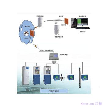 污染源監測子站是位于當地環保廳監測網絡下的某個監測點。一般監測子站配有在線COD監測儀、在線氨氮監測儀、樣品自動采集儀及明渠流量計,和數據采集儀通訊系統組成監控子站。在特殊情況下加裝總磷、總氮或氟離子等監測儀器。