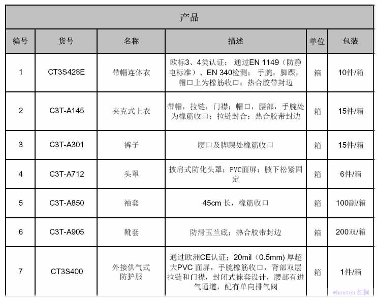 Type3、4、5、6;EN1073-2,EN14126,EN1149,EN340
