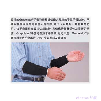 獨特的Grapolator?手套和套袖提供最大程度的手及手臂防護。不銹鋼金屬絲綜合高強度人造纖維,給工人以最好、最有效的防護。該手套提供高級抗切割防護,且仍保持其舒適性及靈活的特征。Grapolator?手套可在熱水中洗滌,也可干洗。Grapolator?手套可用于防護金屬片,刀叉,尖銳塑料及玻璃等。主要特征: