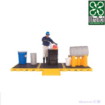 4、符合美國泄漏預防、控制及防范措施(SPCC)、美國環保署容器儲存規定40 CFR 264.175 及統一消防規范防溢流規定。5、長直通管接頭不僅將相連的平臺模塊鎖定在一起,而且使溢出的液體從一個模塊流入下一個模塊。六桶或以上裝配規格的Ultra防滲漏平臺盛漏系統符合美國泄漏預防、控制及防范措施(SPCC)、美國環保署及統一消防規范防溢流規定。