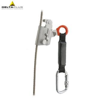 鋼索滑動導向防墜制動器,含散力裝置,一個防倒滑構件和一個鋼制O型鉤AM002,扣裝于直徑8毫米的鋼索上使用,鋼索可以為不銹鋼或電鍍硬鋼或軟鋼。